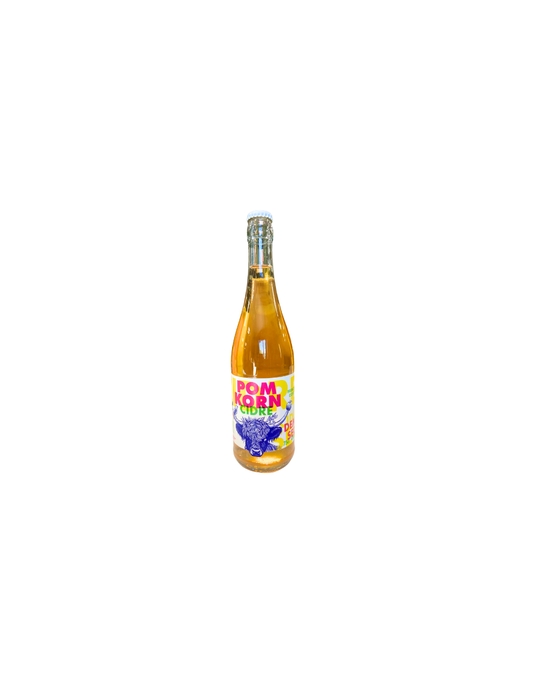 Apples from Normandy, family expertise from Charente and a touch of Scottish pop... This is the starting point for a crazy, sparkling adventure! Light and uninhibited, POM KORN is a neologism inspired by “popcorn”, and also a nod to the Highland cow, an animal that fascinates Sonia. The “K” pays homage to Celtic culture and its pubs.