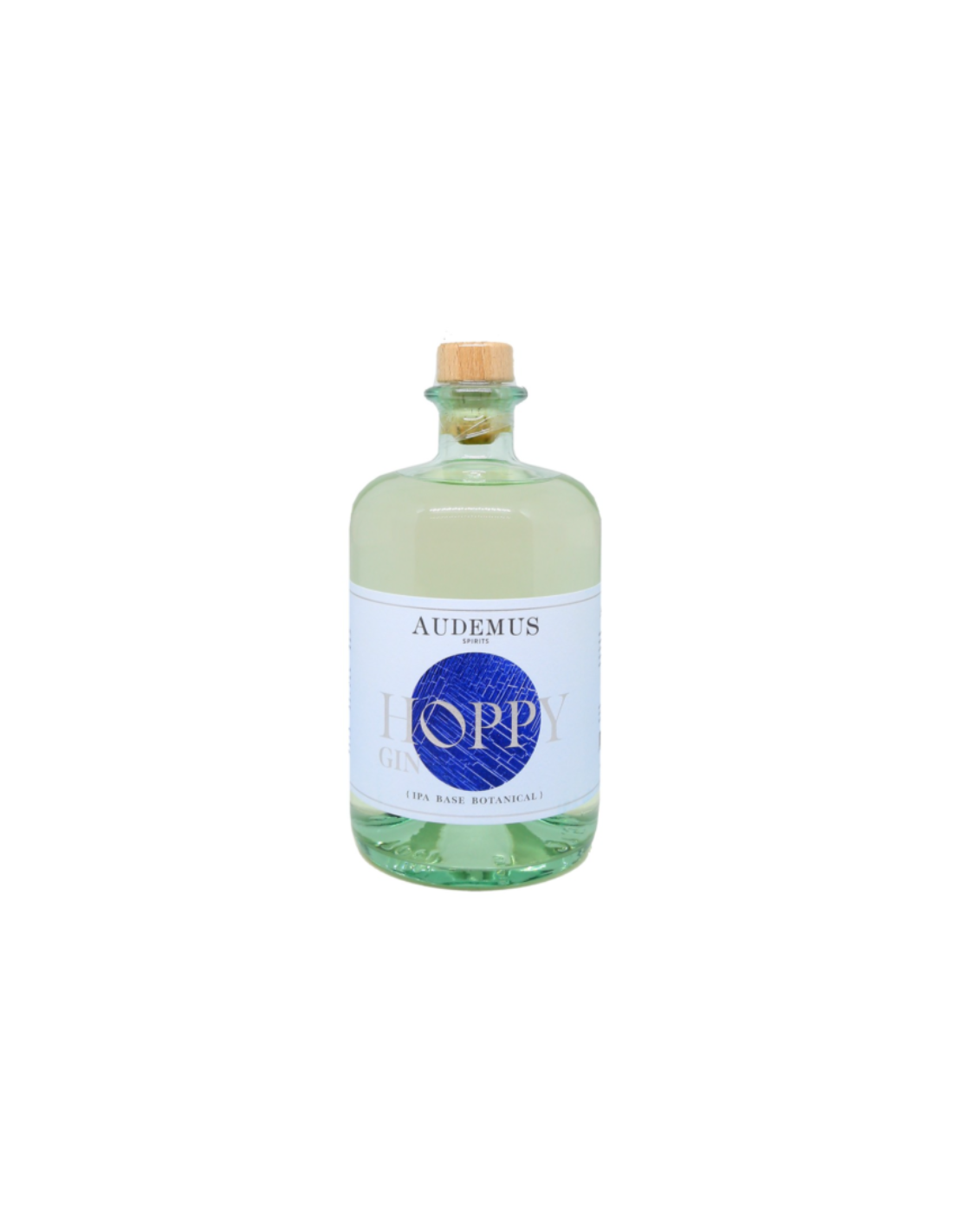 Hoppy Gin is a collaboration between Audemus Spirits and Brasserie Jukebox in Cognac. The base of the gin is an IPA beer, distilled under vacuum with French grain alcohol. Distillates of juniper berries and Columbus hops, a key ingredient in the original beer, are added to the recipe.