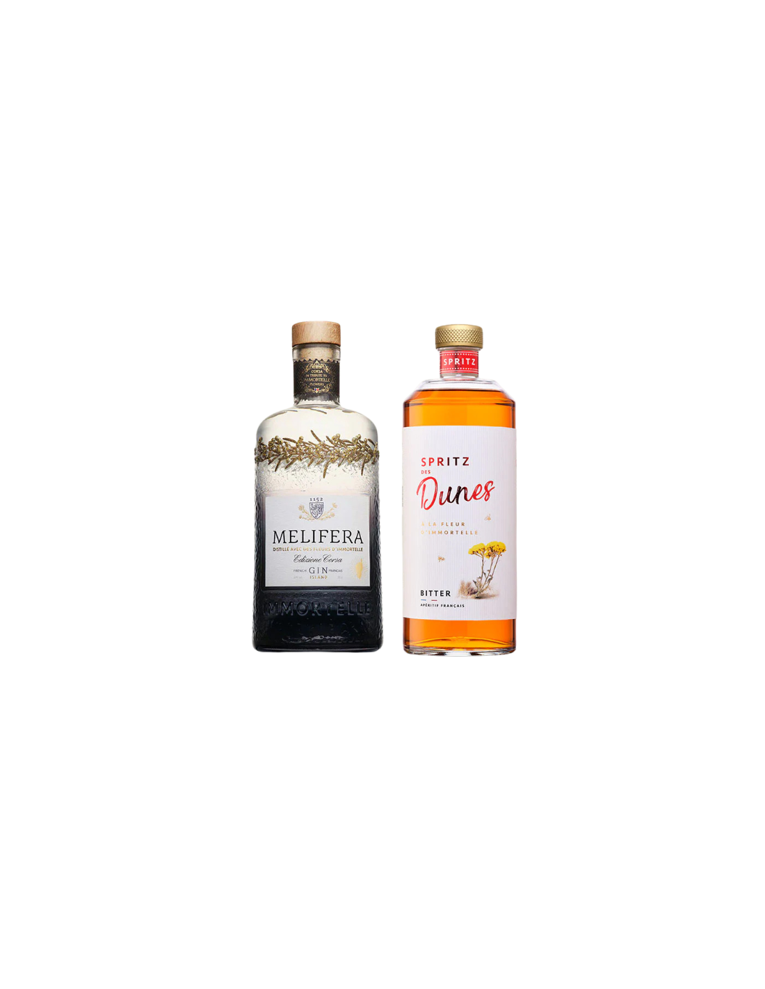 The immortelle flower, flower of the dunes and emblem of Melifera spirits, is the link that unites these two creations. It brings a unique touch of warmth, roundness, sunshine, and warm sand to the Spritz. It also makes Edizione Corsa a spirit with character, a fragrant stroll through the scrubland along sun-drenched paths. With this aromatic and complex gin, Spritz des Dunes finds its perfect partner for the most inventive cocktails.