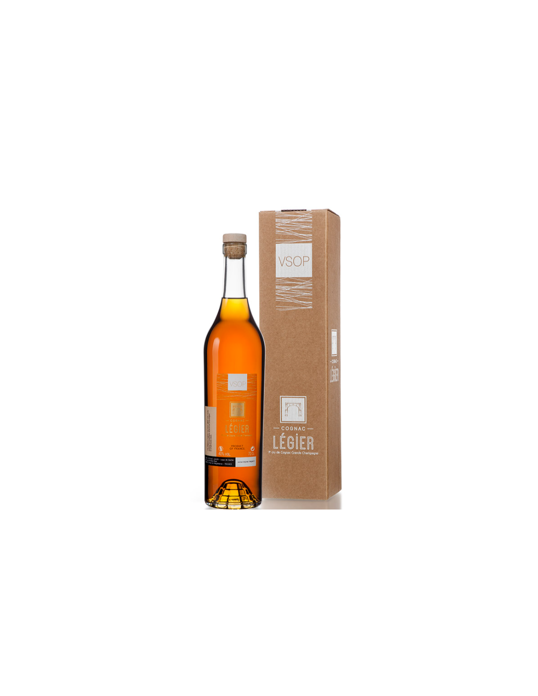 Cognac Légier est certifié HVE (Haute Valeur Environnementale) et CEC (Certification Environnementale Cognac) : deux mentions reposant sur un cahier des charges strict et des pratiques respectueuses de la biodiversité environnante. Le packaging estpar ailleurs fait de produits français, fabriqués localement pour limiter les émissions de CO2. Il utilise des matériaux recyclés et/ou naturels.